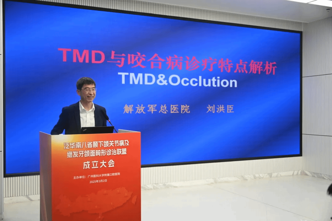 在学术交流环节,解放军总医院第一医学中心刘洪臣教授和上海交通大学医学院附属第九人民医院杨驰教授开展专题讲座。刘洪臣教授围绕颞下颌关节紊乱症、咬合病展开深入剖析。杨驰教授则聚焦于青少年颞下颌关节盘前移位的治疗理念,就此类患者是否进行关节盘复位进行了深入研究。