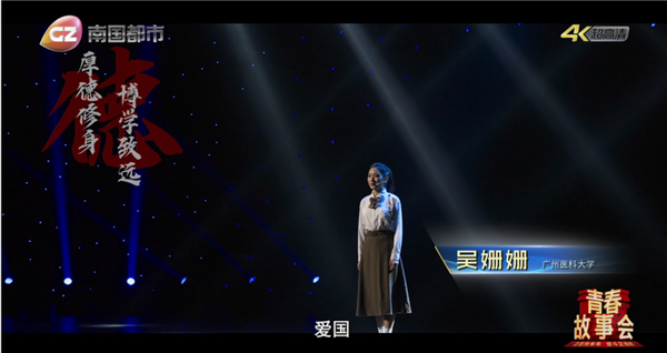 精神卫生学院2020级精神医学专业吴姗姗同学参加了团广州市委、广州电视台主办的“立志向未来 奋斗正当时”——青春故事会节目录制活动。“一百多年前,梁启超先生对当时的新青年说,故今日之责任,不在他人,而全在我少年”。作为先导片的开场词讲述人,吴姗姗同学以铿锵有力的声音、激昂慷慨的表演诠释了新时代中国青年立大志、明大德、成大才、担大任的坚定信心。