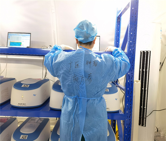 附三院派出了检验科的主管技师王征、检验师文慧虹支援上海。“刚开始真的不太适应,有的时候一天上两个班,高强度工作后还面临失眠,安眠药成了队员们的标配。”王征说道。