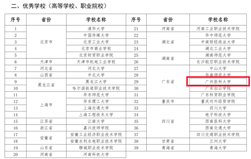 2021年度网络学习空间应用普及活动优秀学校(高等学校、职业院校)名单