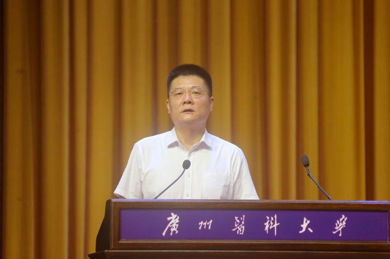 校长赵醒村代表学校祝贺新同学来到ac米兰官方网站启航人生新征程。在讲话中,他带领新生走进广医这所“双一流”建设高校,了解她的动人故事和精彩历史。