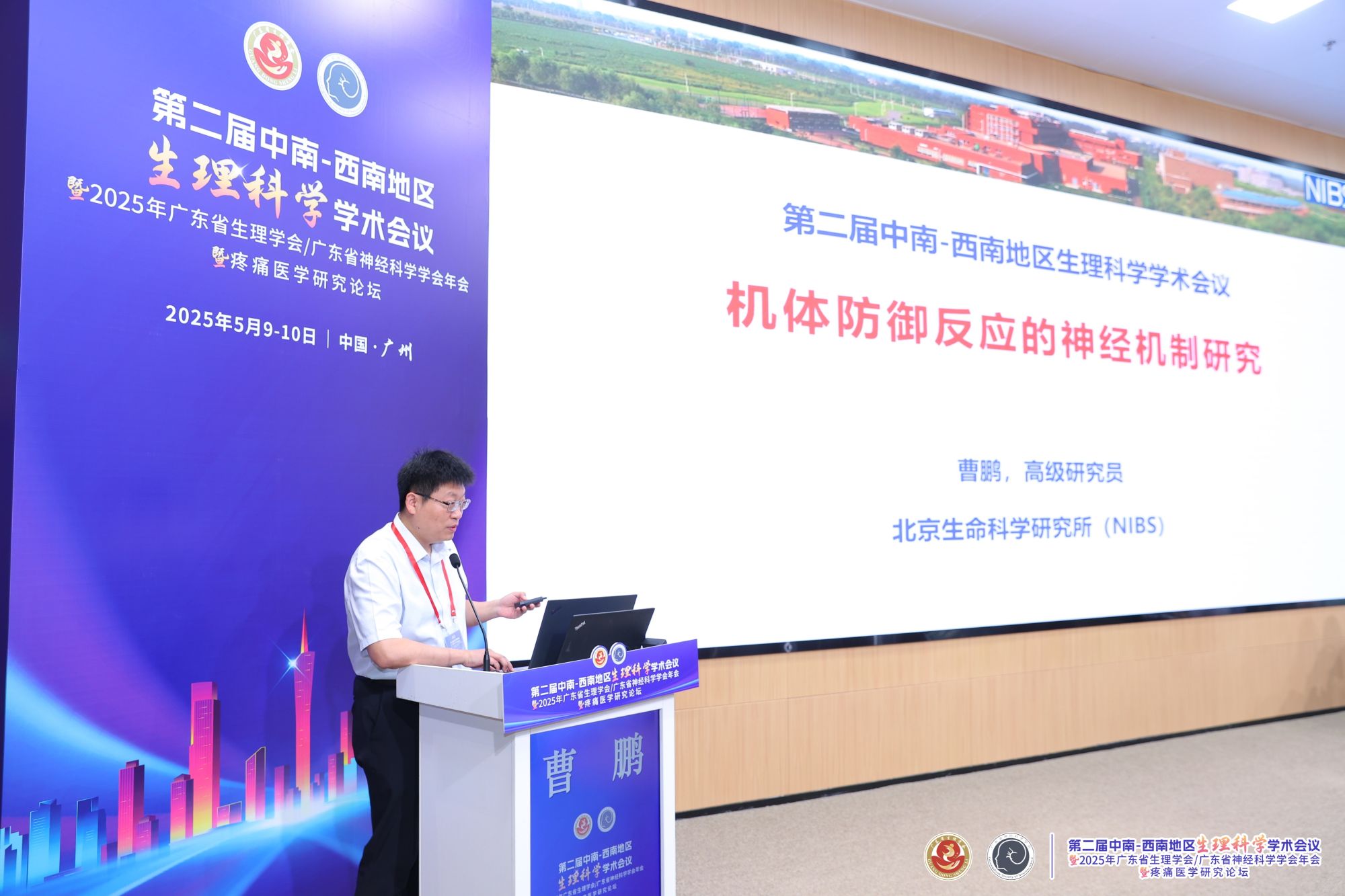 北京生命科学研究所曹鹏高级研究员以《机体防御反应的神经机制研究》为题作主旨报告