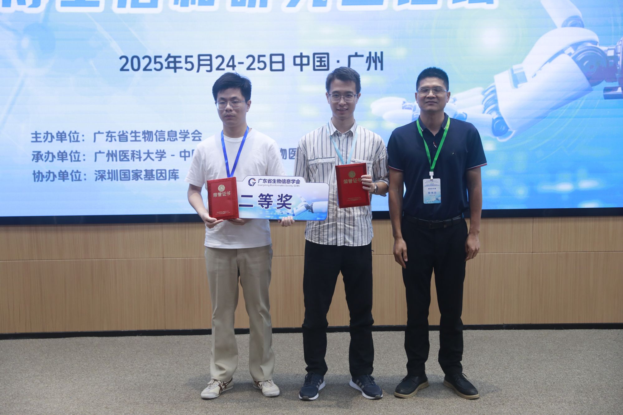 广东省生物信息学会秘书长、中山大学李伟忠教授为二等奖获得者颁奖
