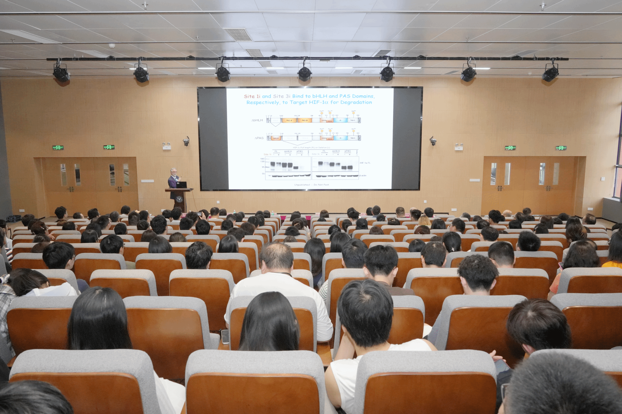 随后,Gregg L. Semenza教授在番禺校区为南山学者、博士后、博士及硕士研究生作题为“Hypoxia-Inducible Factors in Physiology and Medicine”的主题报告。他从低氧诱导因子的发现及其在肿瘤、低氧性肺动脉高压等多种疾病的发生发展中的重要作用及调控机制等,系统介绍了低氧诱导因子在生理学与医学中的意义,阐明靶向该分子后续的转化应用前景。