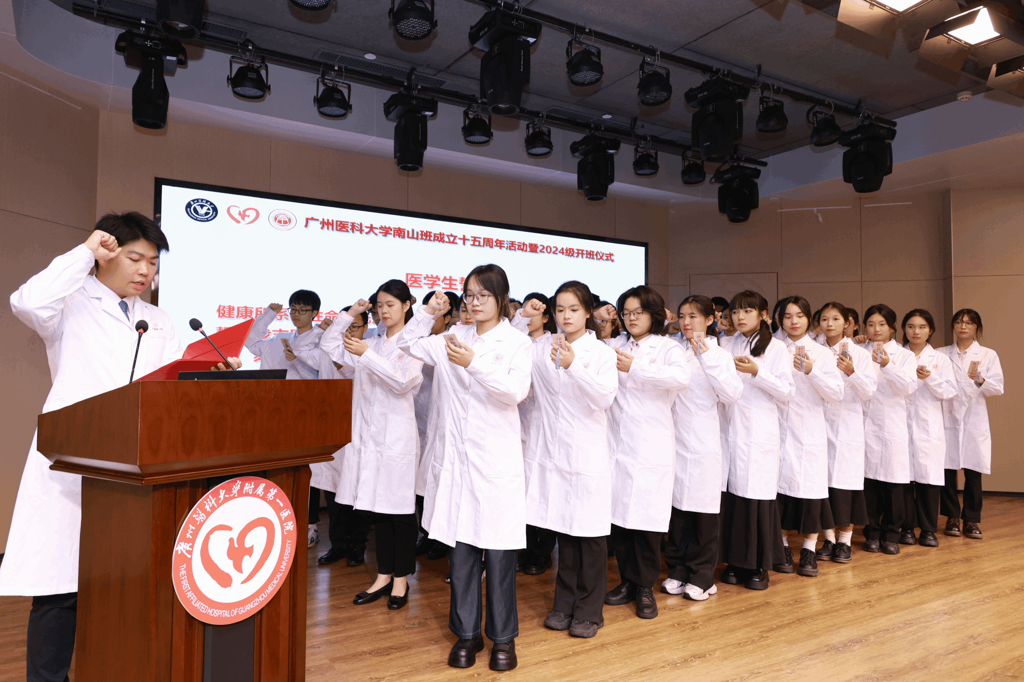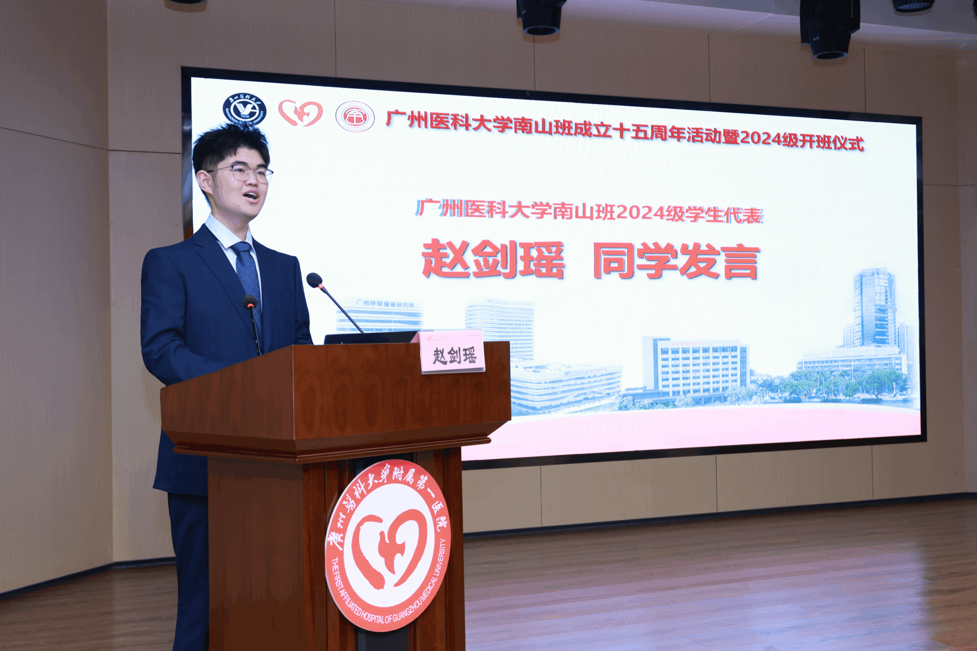 2024级新生代表赵剑瑶在发言中表示,作为学校最具使命感的特色班级,南山班学子不仅要精研医术,更要心怀家国,无论是治病救人还是科学研究,都需要扎实的基础知识作为支撑,2024级南山班学子将传承南山精神,脚踏实地刻苦学习,不负所托,书写属于广医人的新篇章!