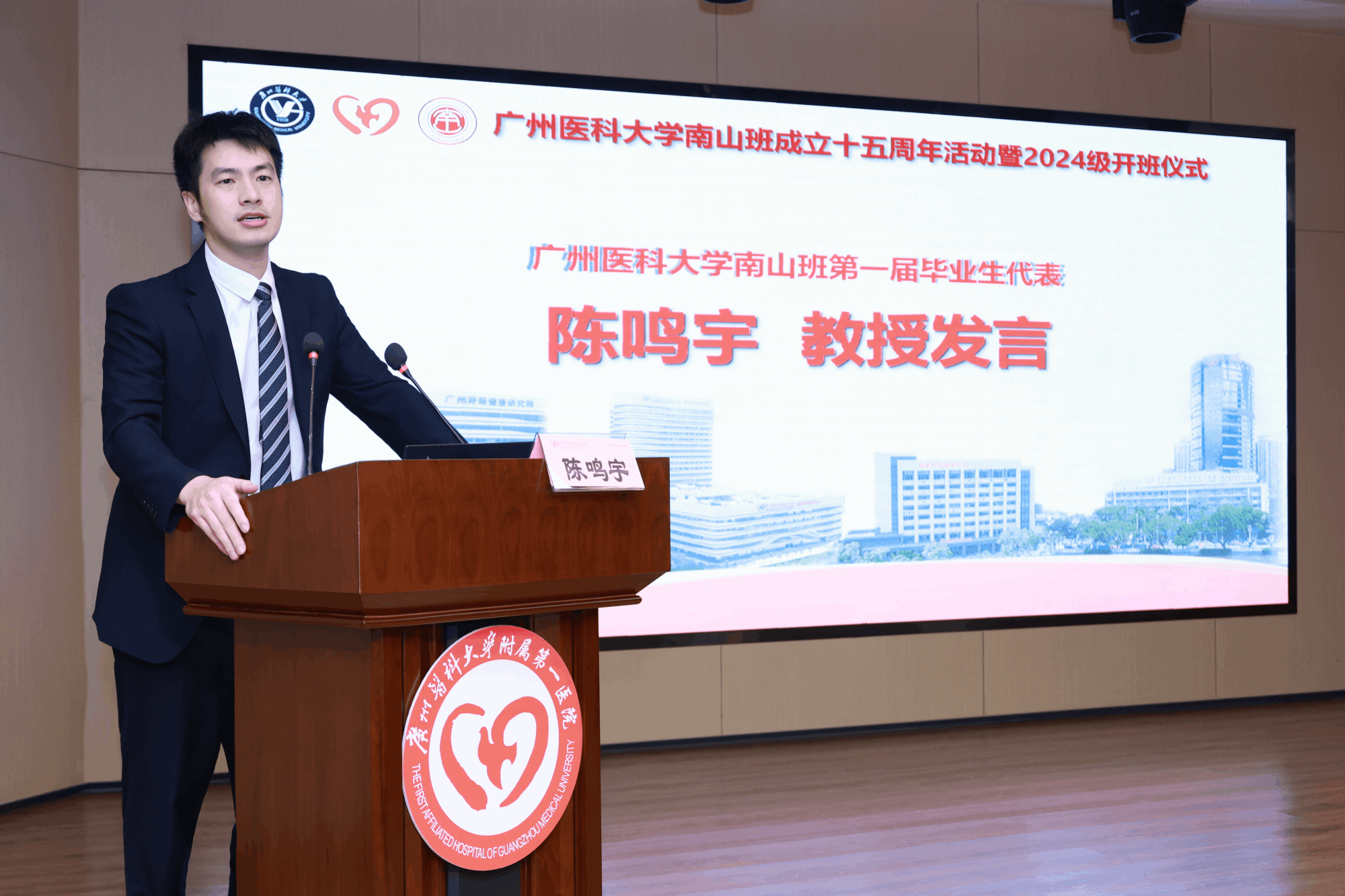 毕业生代表、浙江大学陈鸣宇研究员分享了他在广医的求学经历与收获。他表示,学校给予最优质的资源和最贴心的支持,南山班的人才培养方式使我不仅构建了完整的医学知识体系,更培养了独立思考、提出问题的能力。
