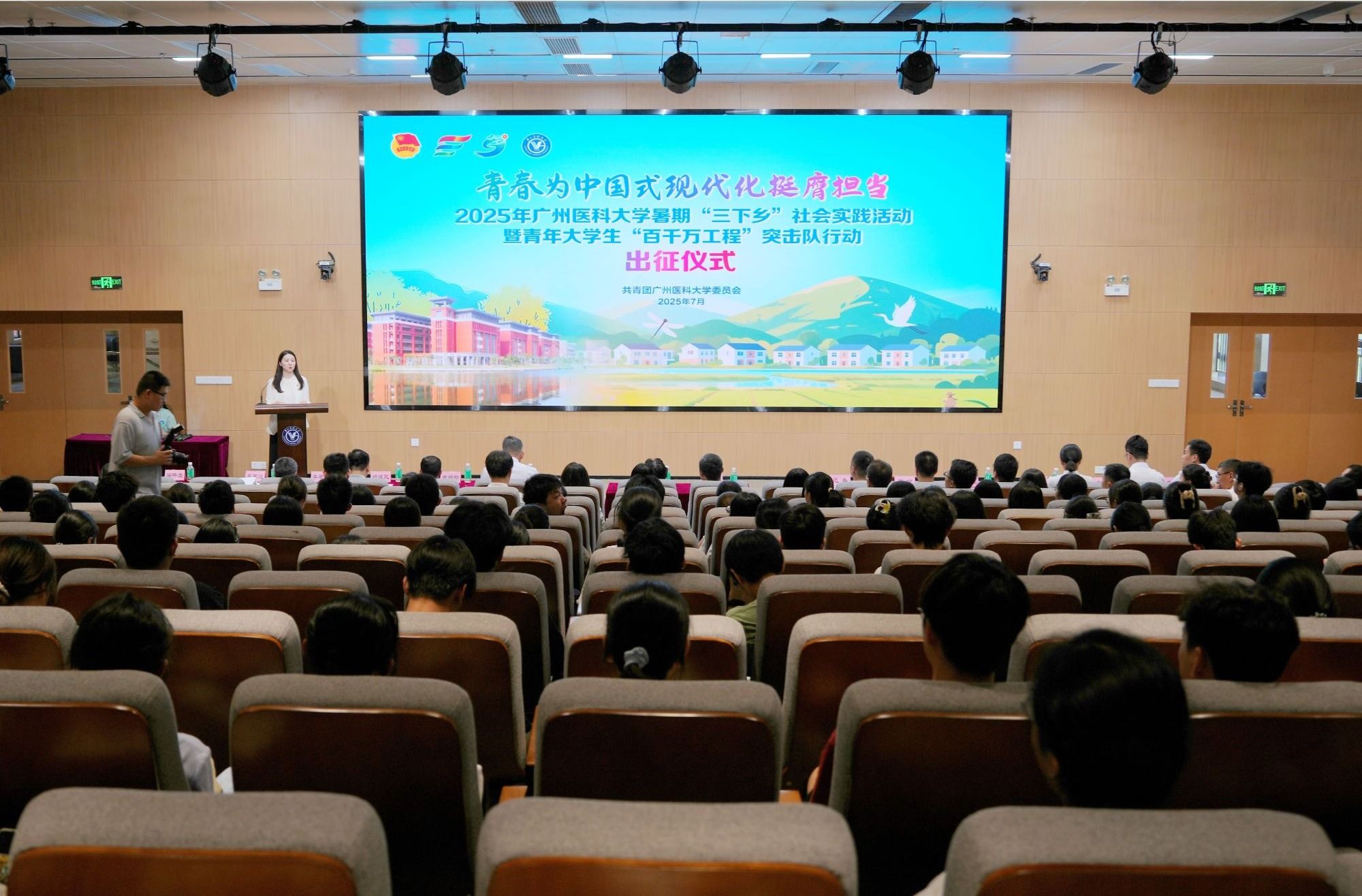 7月8日,2025年ac米兰官方网站暑期“三下乡”社会实践活动暨青年大学生“百千万工程”突击队行动出征仪式在番禺校区举行。团省委书记冉波、副书记范春,学校党委书记曾颖如,党委常委、副校长周麟,团省委学校部和学校相关部门负责人、突击队学生代表参加出征仪式。