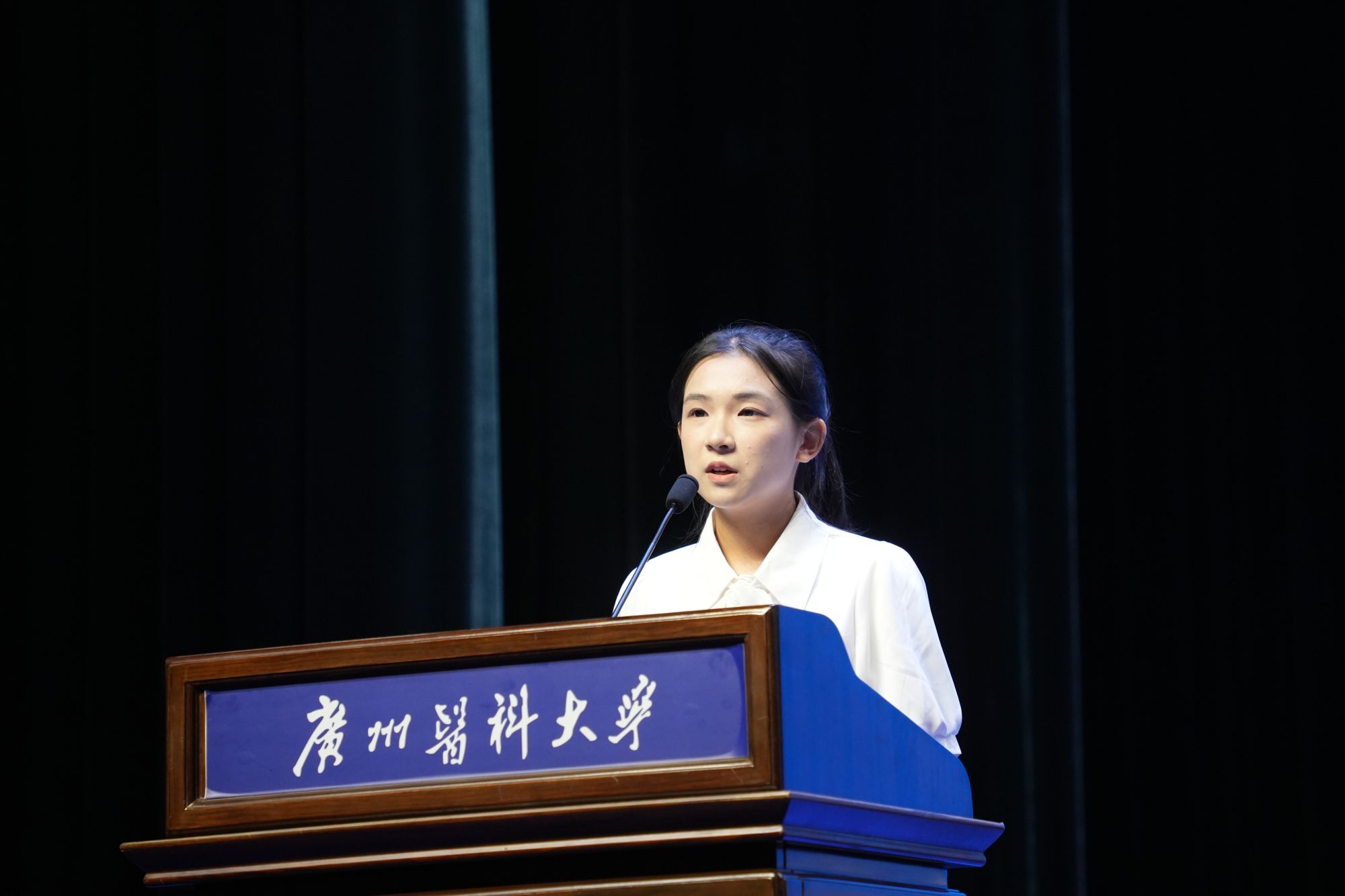吴欣恬曾带领团队参加全国大学生医学创新大赛、挑战杯、互联网+等比赛,荣获国家级金奖,还曾前往英国爱丁堡大学进行三个月的科研交流。她鼓励新生们尽快适应大学的学习节奏,培养主动学习的能力,敢于尝试,在挑战与磨炼中成长,学会拥抱集体、携手同行。