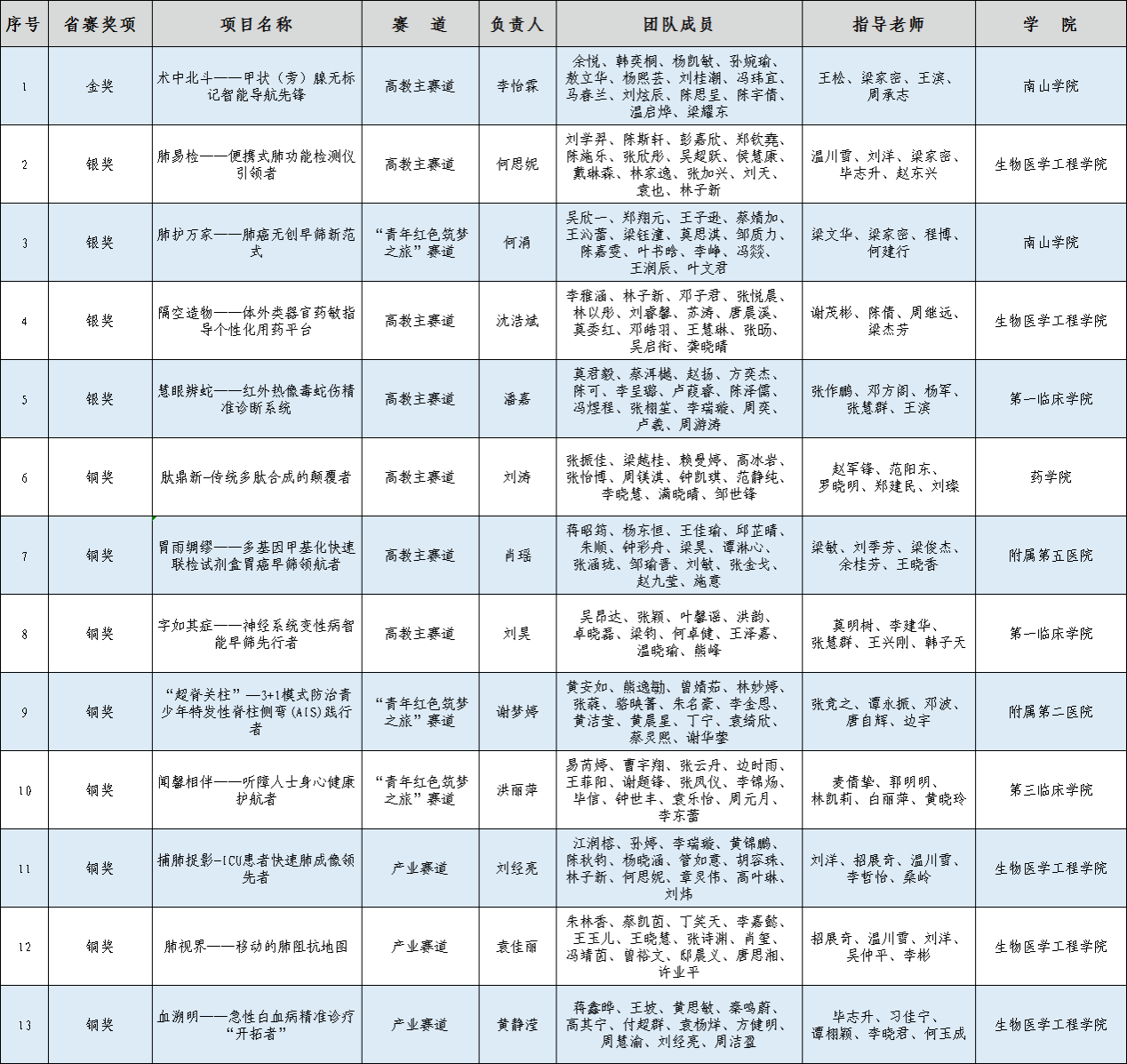 近期,广东省教育厅公布中国国际大学生创新大赛(2025)广东省分赛获奖名单,广医学子凭借出色的创新能力和扎实的专业素养,在比赛中取得金奖1项、银奖4项、铜奖8项的成绩。