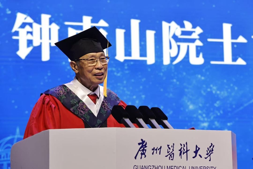 “看到大家朝气蓬勃,让我想到65年前自己毕业的场景。”钟南山微笑着面对台下的毕业生,回忆起自己年轻时的经历。他嘱咐同学们,“生逢盛世当不负盛世”。