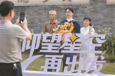 ac米兰官方网站举行2025年毕业典礼,不少同学在主题装置前拍照留念(广州日报全媒体记者高鹤涛摄)
