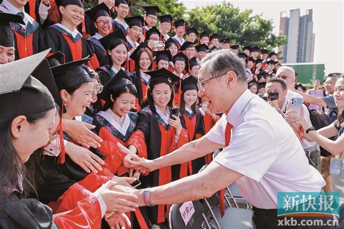 6月25日,ac米兰官方网站2025年毕业典礼在番禺校区举行。当天一大早的毕业生合照环节,88岁的钟南山院士走到队列前排,向激动的毕业生们微笑招手。