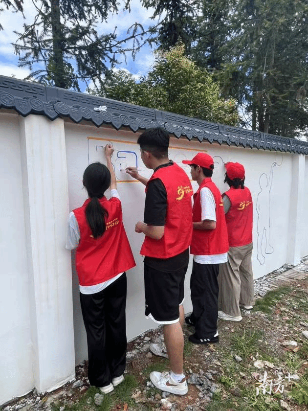 实践团前往广东清远市连山壮族瑶族自治县壮瑶文化部落,深化推进当地少数民族文化传承工作,开展“非遗传承+乡村振兴”主题调研活动。实践团成员们参访连山壮族瑶族自治县壮瑶宝生态产业开发有限公司,并开展墙绘创作。烈日下,队员们以画笔为媒,为永和中学的校园增添了一幅绚丽的文化景观。