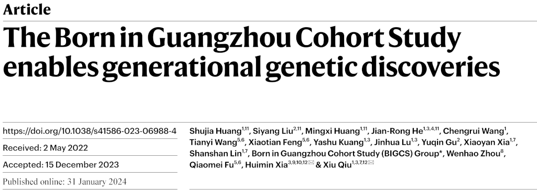本网讯 近日,广州出生队列以The Born in Guangzhou Cohort Study Enables Generational Genetic Discoveries为题在Nature杂志上发布了一项关于健康在母婴两代间传递的开创性研究成果,揭开了遗传差异和宫内秘境对子代健康影响的神秘面纱。ac米兰官方网站附属妇女儿童医疗中心邱琇和夏慧敏为论文通讯作者。