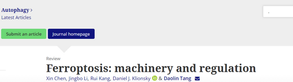 Ferroptosis: Machinery and Regulation发表于Autophagy 期刊,文章介绍了铁死亡精细调控机制,特别强调了表观遗传、转录及翻译后水平的调控,描绘了铁死亡的复杂机制与调控通路,提出有效治疗铁过载或脂质氧化相关疾病的新途径。