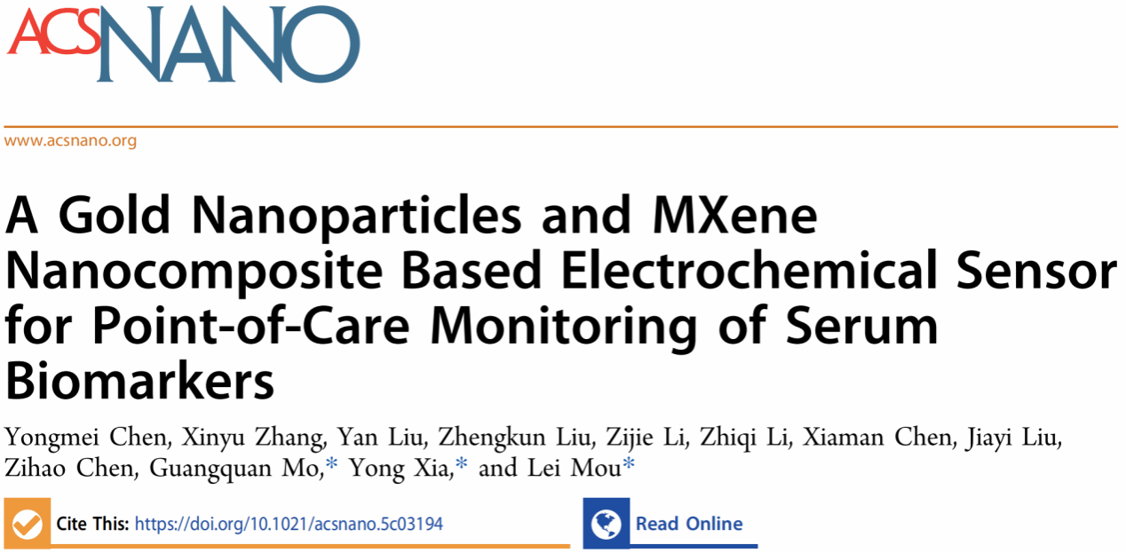 4月22日,ac米兰生物医学工程学院牟磊副教授、莫光权副教授等在美国化学学会纳米杂志《ACS Nano》上合作发表了便携式电化学 POCT 传感器的研究论文A Gold Nanoparticles and MXene Nanocomposite Based Electrochemical Sensor for Point-of-Care Monitoring of Serum Biomarkers。牟磊副教授为最后通讯作者,莫光权副教授为共同通讯作者,ac米兰官方网站为第一署名单位。