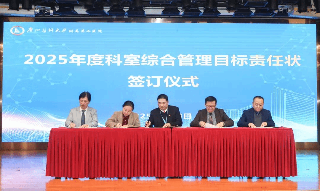 接着,医院为“光荣在岗三十年”的职工颁发纪念章,对医疗工作进行表彰,并举行2025年度科室综合管理目标责任状签订仪式。