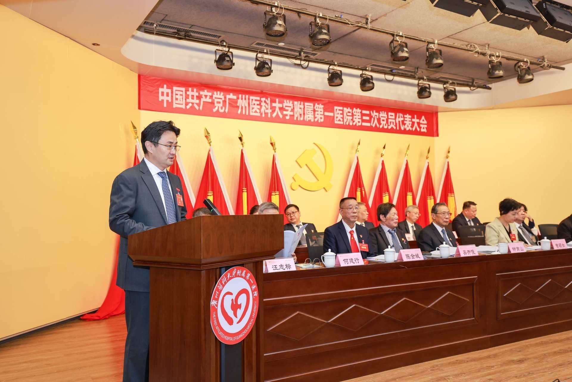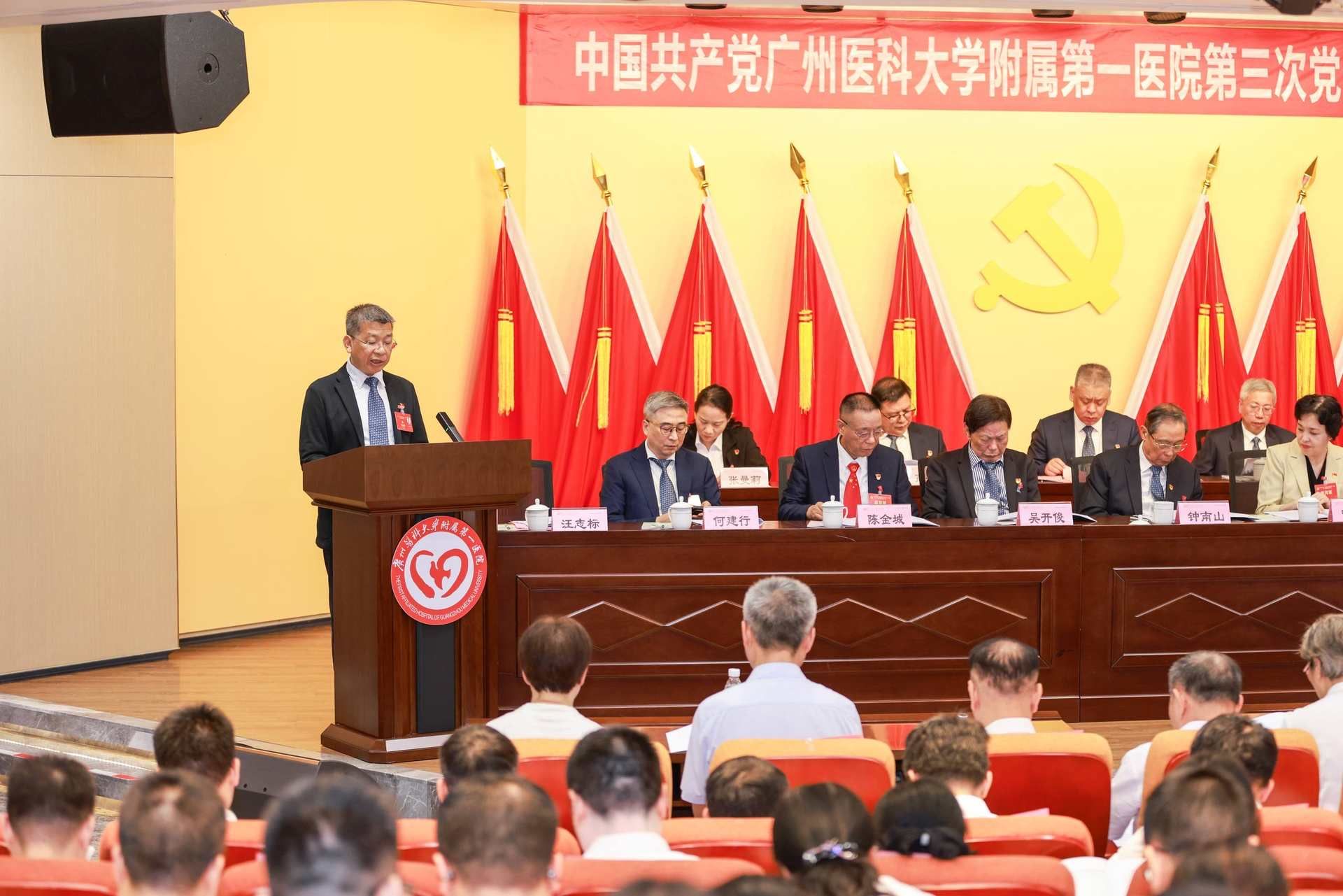 附属第一医院党委书记汪志标代表中国共产党ac米兰官方网站附属第一医院第二届委员会作题为《守正创新 锐意进取 奋力开创医院高质量发展新局面》报告。